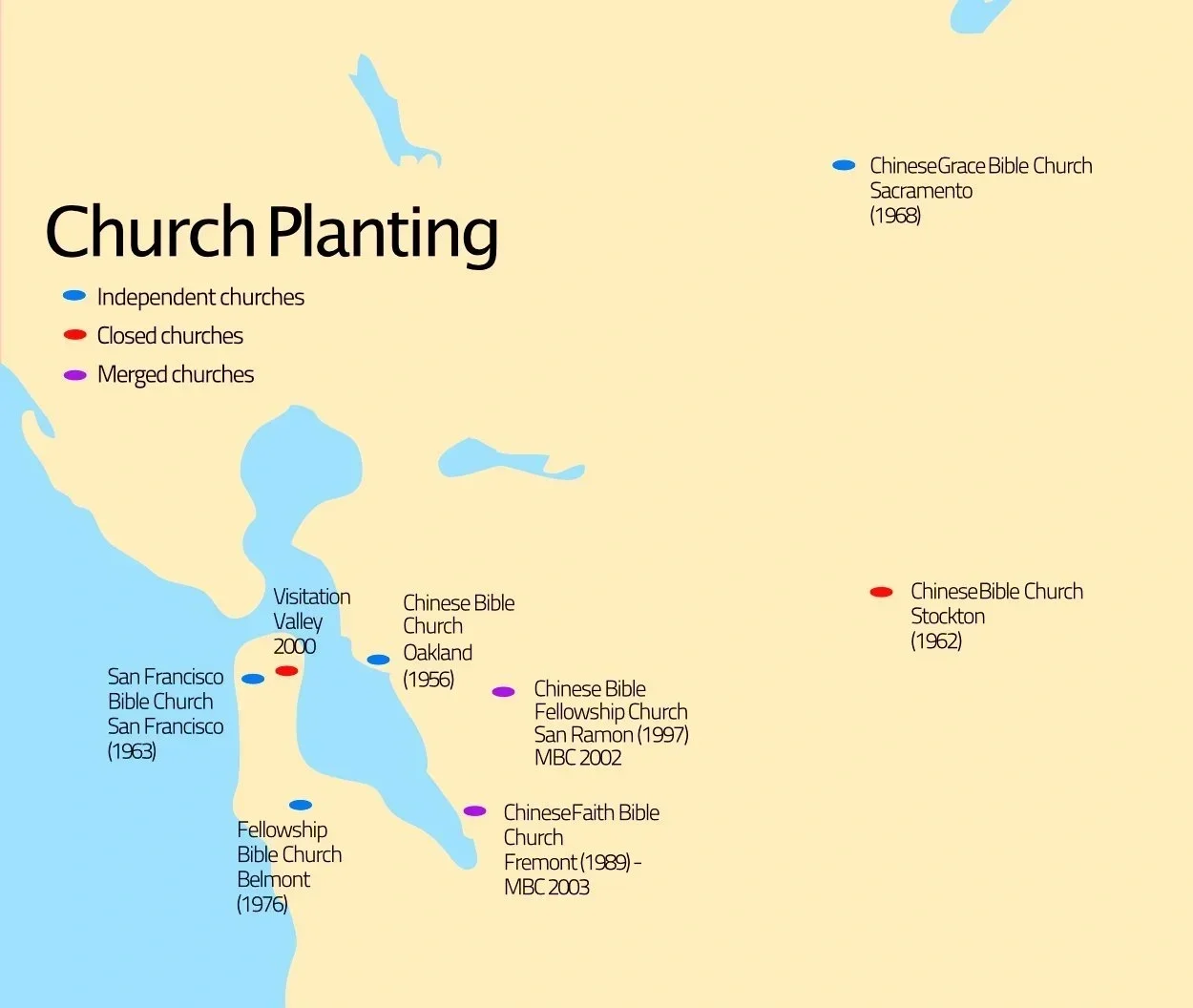 In 1956, the Lord led Sen and his wife, June, to move from Portland, Oregon to SF Bay Area in California. The first church was started in their Oakland home with a small group of children and young people. Eight more churches were planted in the next five decades in the SF Bay Area and Sacramento area.
